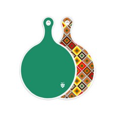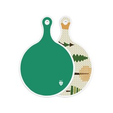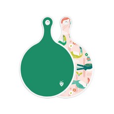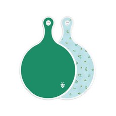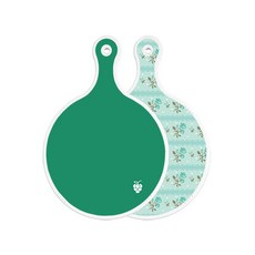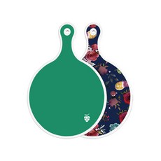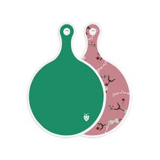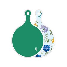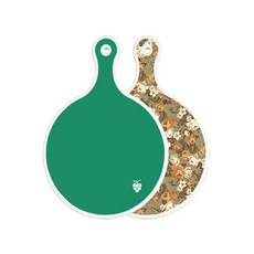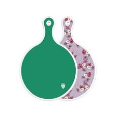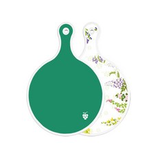 로엠디자인 양면 원형 서빙 도마 그린, 자색플라워패턴, 1개