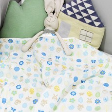 오즈맘 면 100% 이중거즈 보들보들 유아 여름 블랭킷 중 90 x 110 cm, 블라섬 블루