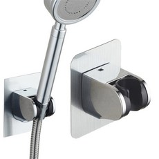 리빙공식 무타공 접착식 각도조절 샤워기 홀더 거치대 2개, 실버