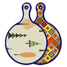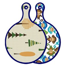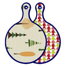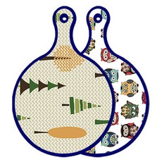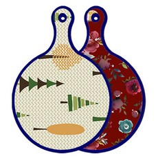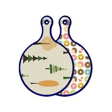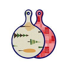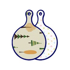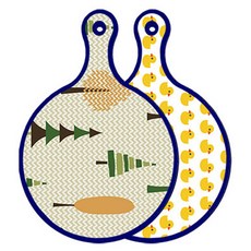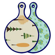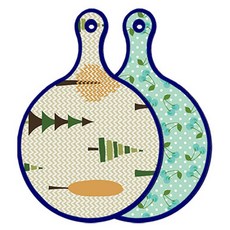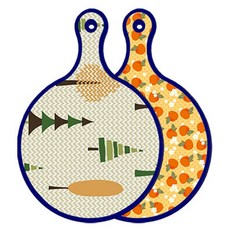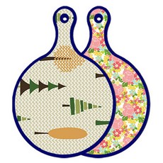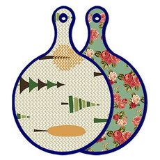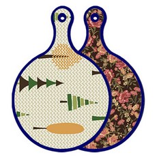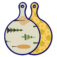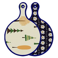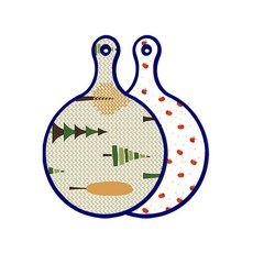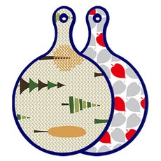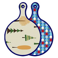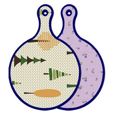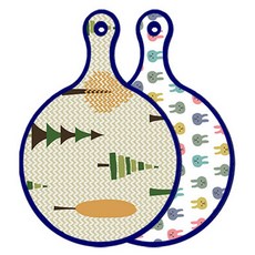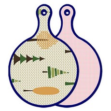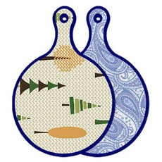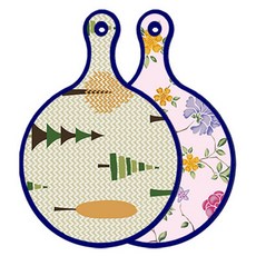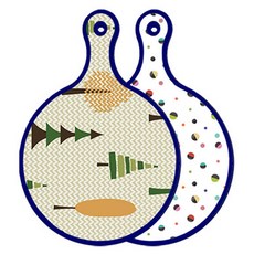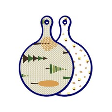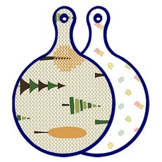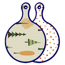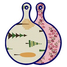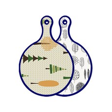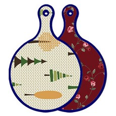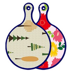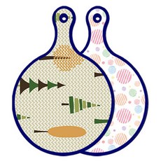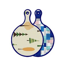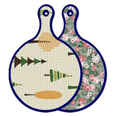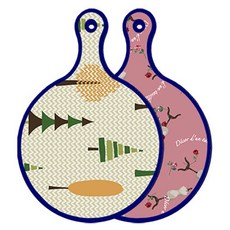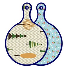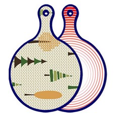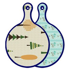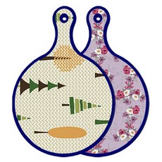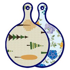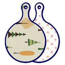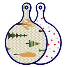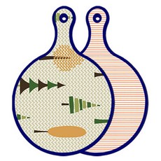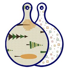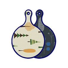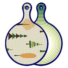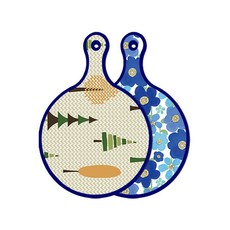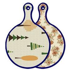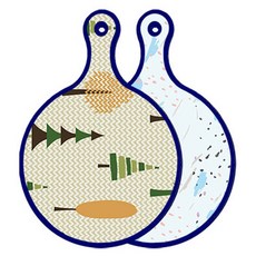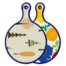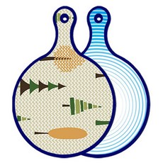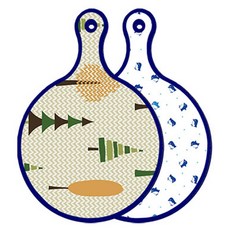 블루에디션 양면 원형 서빙 도마 숲패턴2, 국화블루옥색, 1개