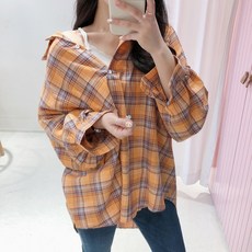 에이치스 와이드 체크 오버핏 퍼프소매 썸머 남방