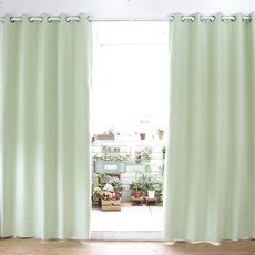 프리스페이스 베이직 암막 커튼세트 큰창 라이트그린