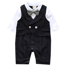 베이비맥스 남아용 워싱턴 체크보타이 돌 백일 아기정장 긴팔 롬퍼 1333