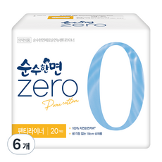 순수한면 제로 순면 뉴팬티라이너, 슈퍼롱, 20개입, 6개
