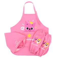 핑크퐁 아동용 앞치마 + 토시 + 두건 세트, 핑크