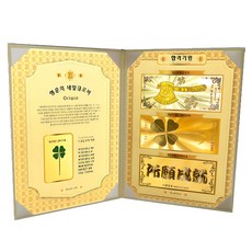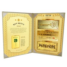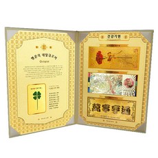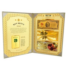 럭키심볼 행운의 네잎 클로버 생화 + 황금 지폐 3종 세트, 대박 기원