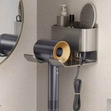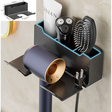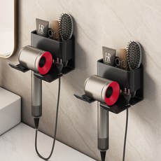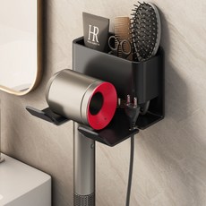 구름을보리 드라이기 거치대 무타공 벽 강력접착형 화장대 수납형걸이, 1개, 블랙