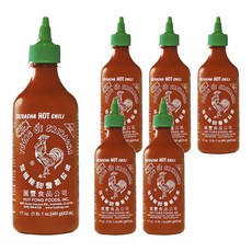 (특가) 후이펑 스리라차 소스 쓰리라차 후이퐁 칠리 스리랏차 0칼로리 닭표 다이어트 저칼로리 허이펑 핫칠리 샐러드 드레싱 당뇨 비건소스 닭가슴살 쌀국수 핫소스, 255g, 6개
