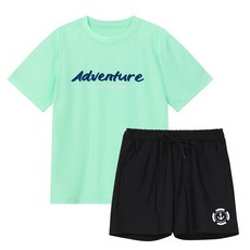 min54 아동 주니어 반팔 래쉬가드+보드숏 세트 LE23-514 루즈핏 수영복 8세~17세