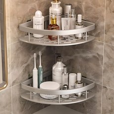 공간활용 무타공 코너형 욕실선반, 실버, 2개