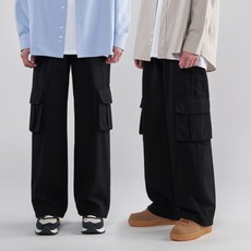 팀스핏(품질보증) 남녀공용 빅사이즈 와이드핏 빅포켓 밴딩 카고 팬츠