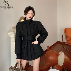 ANYOU 여성용 몸에 맞다 패딩 하프 패딩 허리 조절 가능 솜옷 2컬러