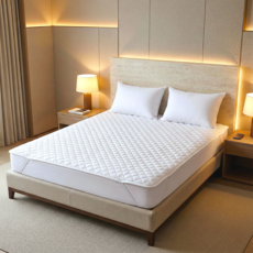 엣지홈 호텔 순면 침대 패드 고정밴드 알러지케어 누빔 매트리스 이불 패드 슈퍼 싱글 퀸 킹, 화이트