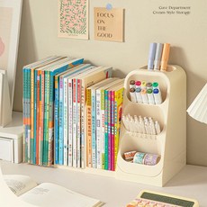 KDNC 탁상용 길이조절 북엔드 펜꽂이 수납함, 1개, 크림