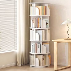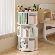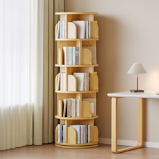 KURUA 학생 대용량 원형 책장 거실 서재 회전형 책꽂이, 4단, 오크